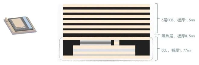 隔热设计方面也进行了优化,在常规的PCB设计中,导电层之间一般通过填充玻璃纤维和树脂实现绝缘和支撑,考虑到PCB散热问题,填充的材料一般会尽量选择低热阻的材料,例如,选择的填充材料的导热率一般在0.5W/m·K,或者更高。