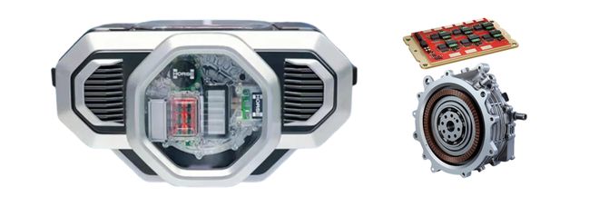 在硬开关条件下的主驱应用中,浩思动力这款GaN嵌入式功率模块的开关频率可达30kHz以上。更高的开关频率有助于大幅降低输入电容的容值与体积,利用这一技术整体主驱逆变器的功率密度得到了大幅提升。该嵌入式封装结构在实现高频率运行的同时,仍保留了PCB作为电路连接基础载体的功能,原有的功率器件的栅极驱动芯片可以完美的和功率器件集成在一起,甚至MCU都有可能可以集成在一起。这些特性使得主驱逆变器的体积只有同等条件下框架式注塑功率模块的2/3。